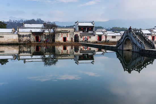 你可以清晨去村邊的月沼漫步,晨光下,看著纖柔的荷葉和碧波中黑白分明的建筑的倒影,足以讓你把這個(gè)春節(jié)過成一首雋永的詩歌。